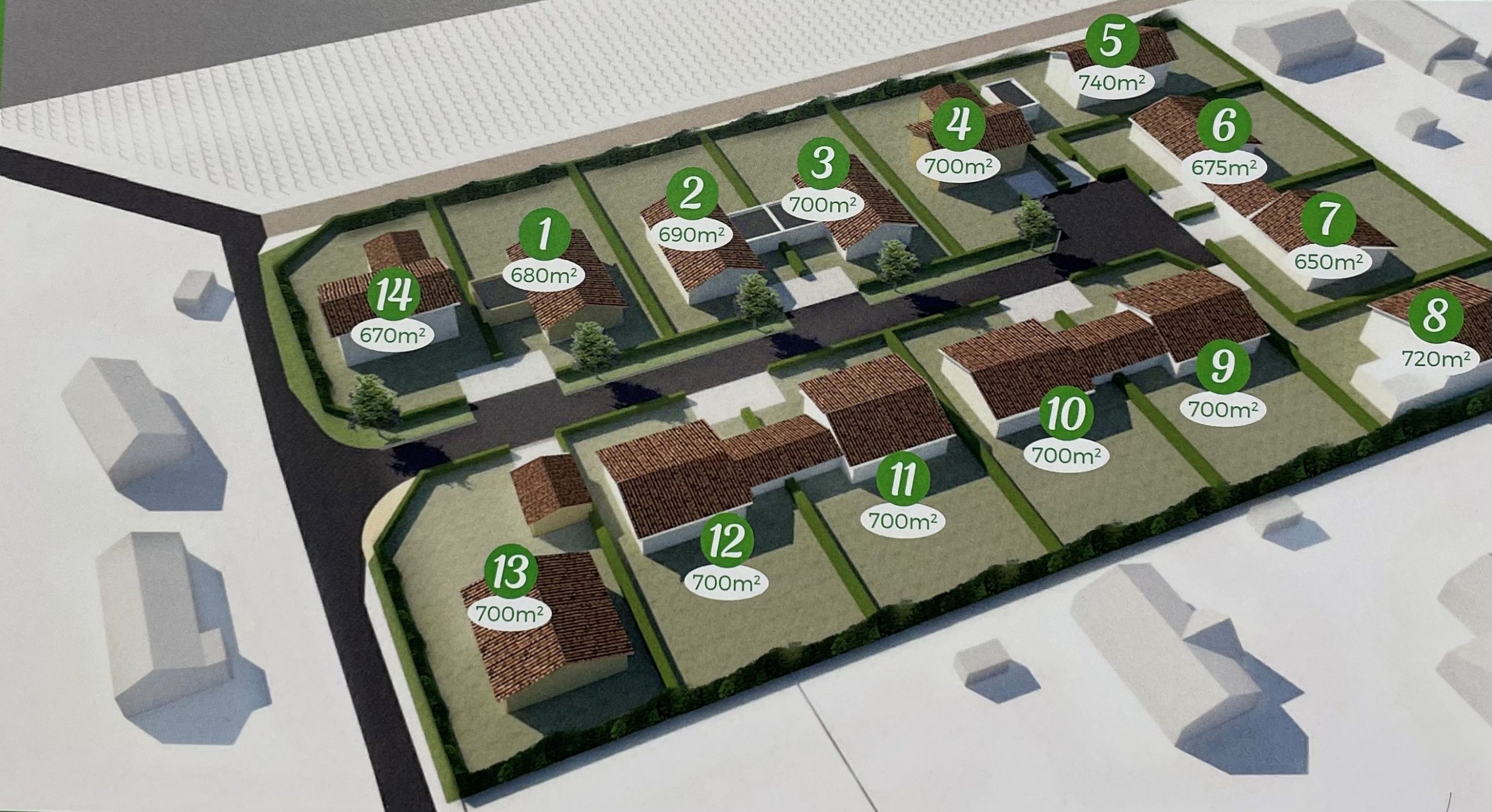 • 14 terrains construits